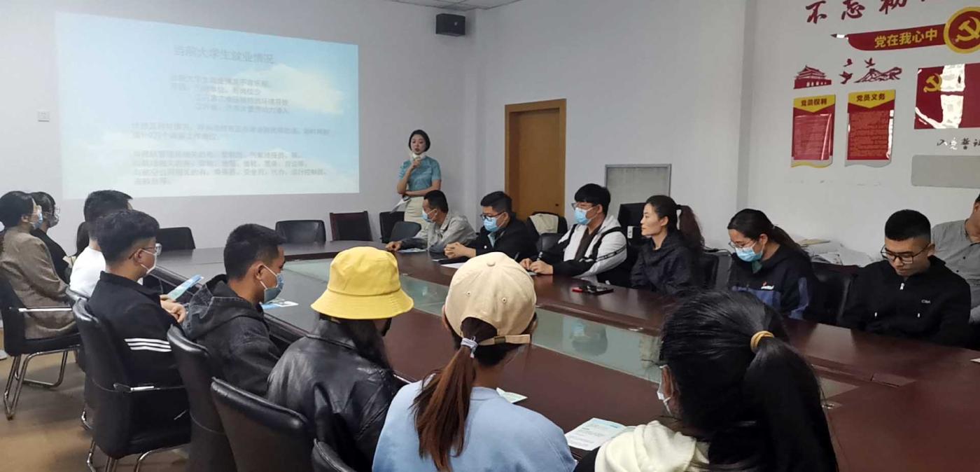 2021年4月28日下午五点天和圆航空服务有限公司在护理学院十号楼六楼会议室举行了毕业生就业宣讲会。护理学院党总支副书记毛永强、学工办薛赛男、司桠楠老师及30名毕业生参加了本次宣讲会。
