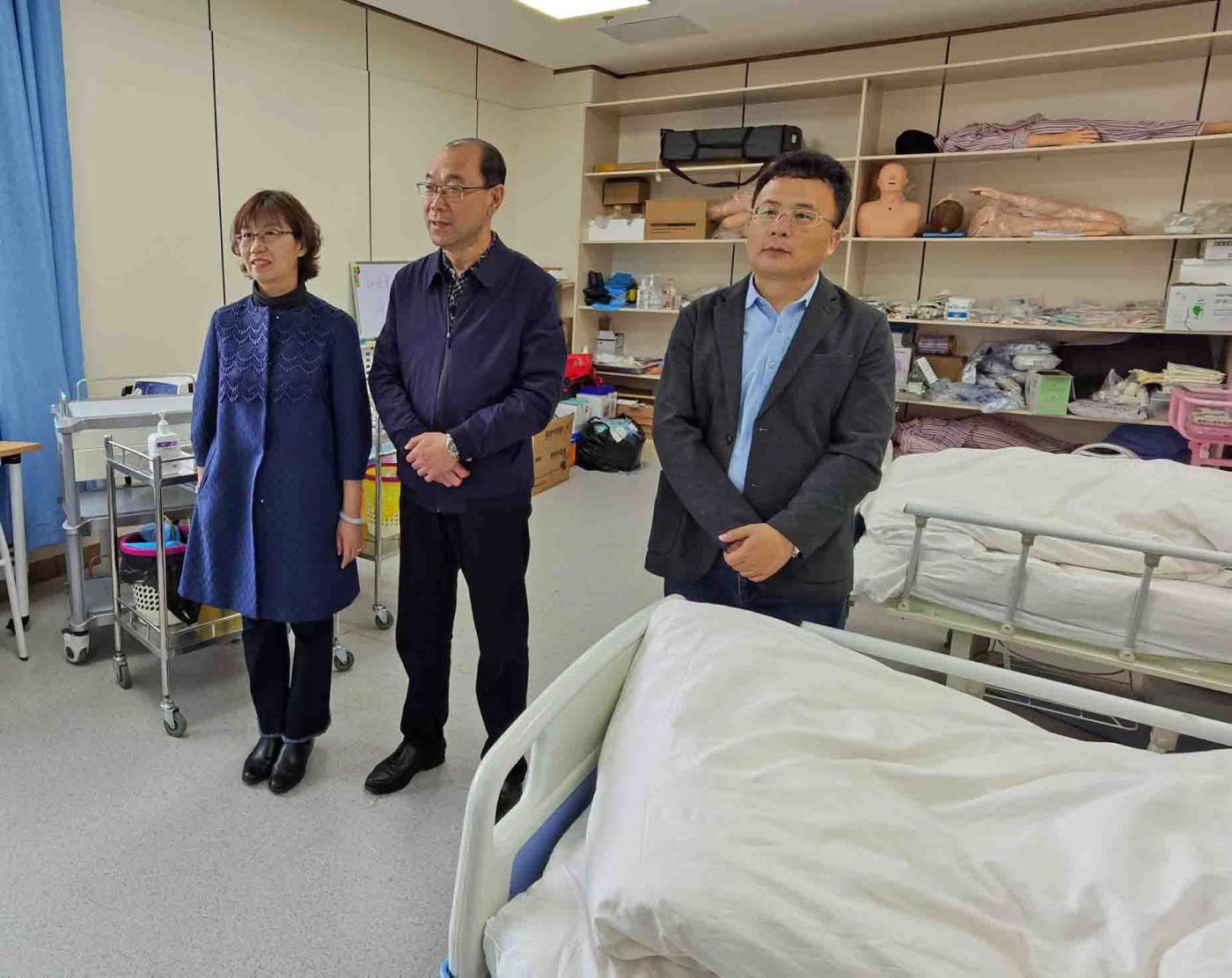 王春森书记对备赛团队的辛苦付出给予充分肯定。他表示,这次培训无论对指导老师还是参赛选手都是一个难得的机遇,相信大家的能力和勇气经得起考验,并预祝选手们取得满意成绩。随后,马月宏副院长对筹备竞赛选手培训的教师表示衷心的感谢,他期待护理学院的参赛选手不负众望,充分展现出学校的风采和水平。