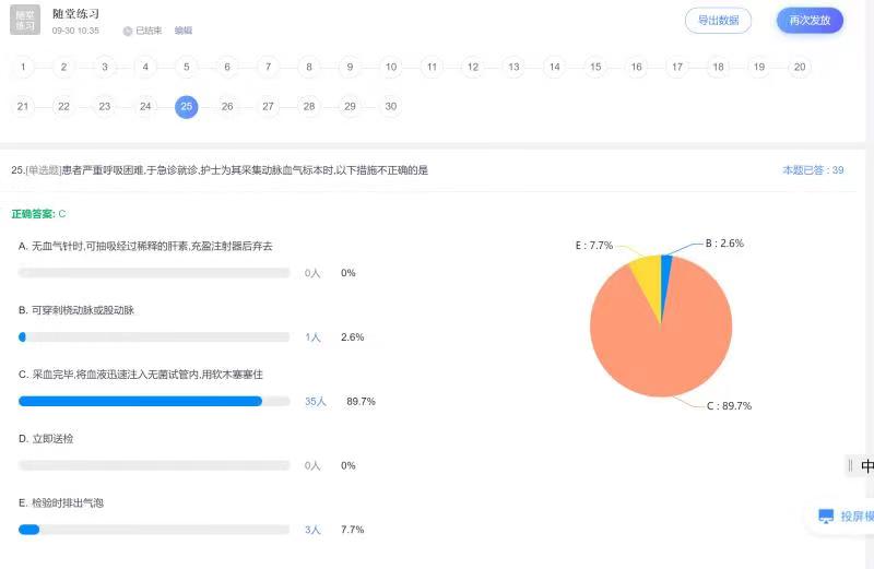 9月28日线上开课至10月23日,护理学院共完成310门次授课;在线教学运行班级35个;在线学习人数达1314人。其中理论课程依托线上教学平台(超星学习通、智慧树平台),按照本学期课程表全部进行了直播教学;实验课程采取直播教学与录播教学相结合;保障了这次线上线下教学活动无缝衔接。