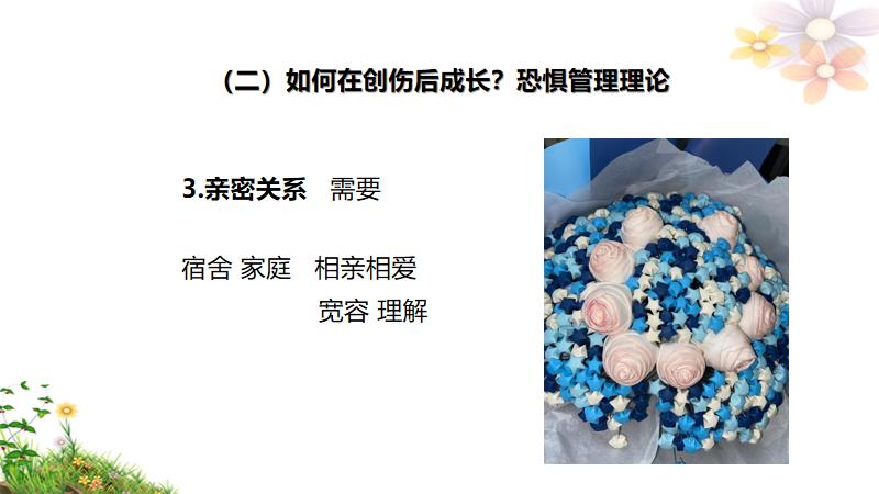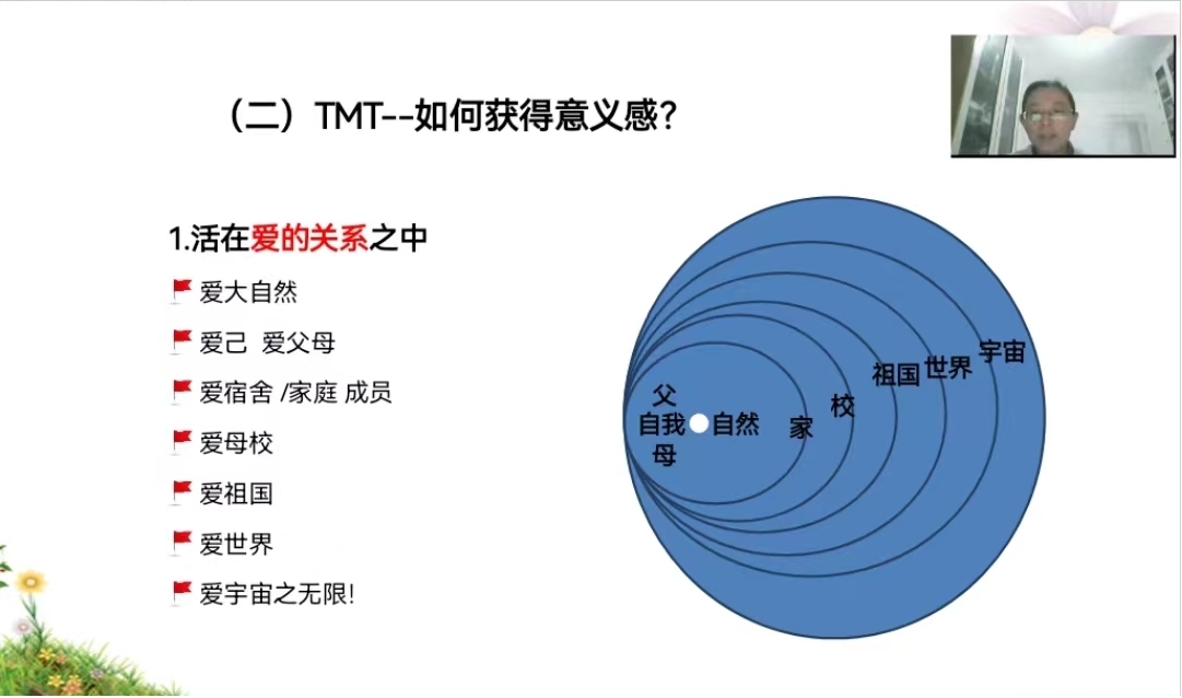 本次心理讲座内容以清华大学彭凯平教授的积极心理学思想为框架,结合学生目前的心理现状,从价值观、生命观、提高心理韧性的方法等方面给予学生积极的心理支持和干预,帮助学生建构“以爱为核心”的生命价值观体系,引导学生练习正念冥想,疏导学生负性情绪反应,提高学生心理应激的水平。