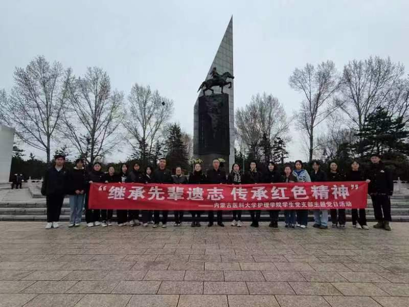 4月3日上午,护理学院学生党支部在内蒙古烈士陵园开展“继承先辈遗志 承红色精神”主题党日活动。护理学院党总支副书记毛永强、全体学生党支部支委及部分学生党员参加。