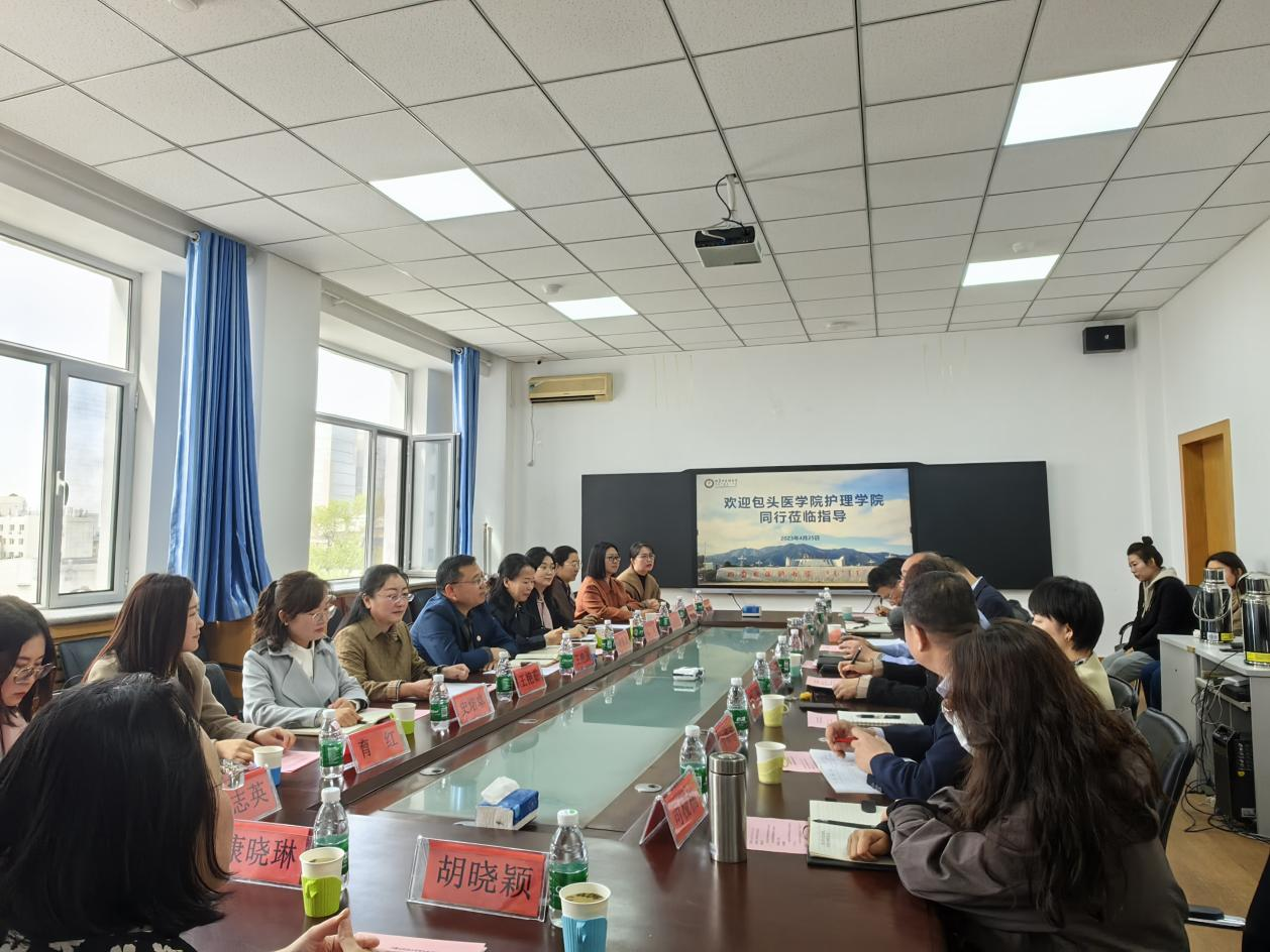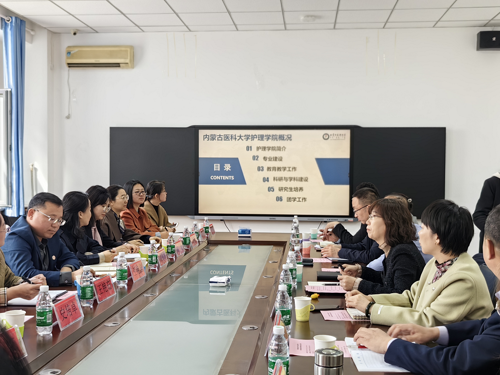 4月25日,包头医学院护理学院党总支副书记、院长王艳国、党总支副书记梁丽波、副院长王艳茹一行12人来我院开展调研交流。学院党总支书记王春森、院长扈瑞平、党总支副书记毛永强、副院长李翀、副院长马月宏,各科室负责人参加调研。