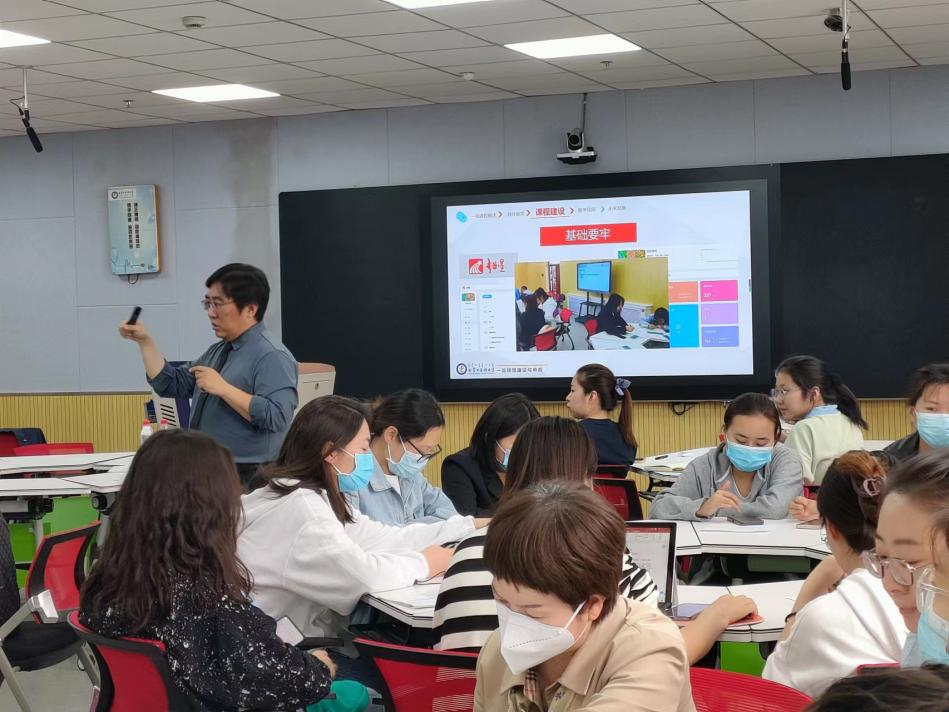 王磊老师在讲座中分享了一流课程建设的经验,强调了课程思政、团队合作、实践和反思的重要性,并和参会教师就课程建设与申报存在的问题及困惑进行了现场研讨。