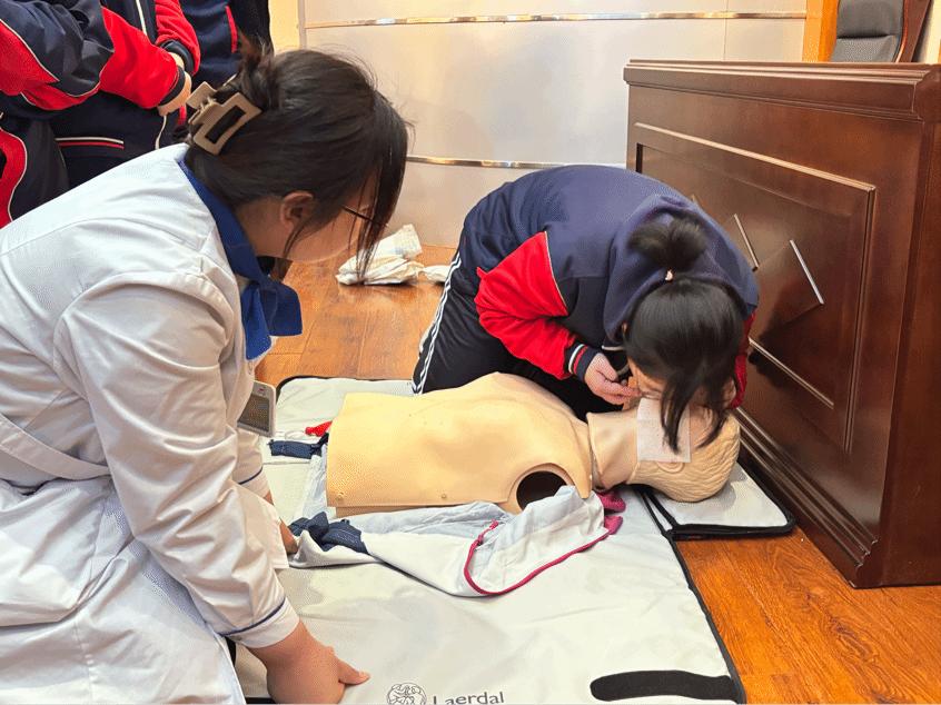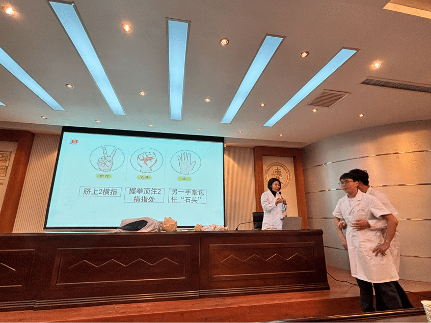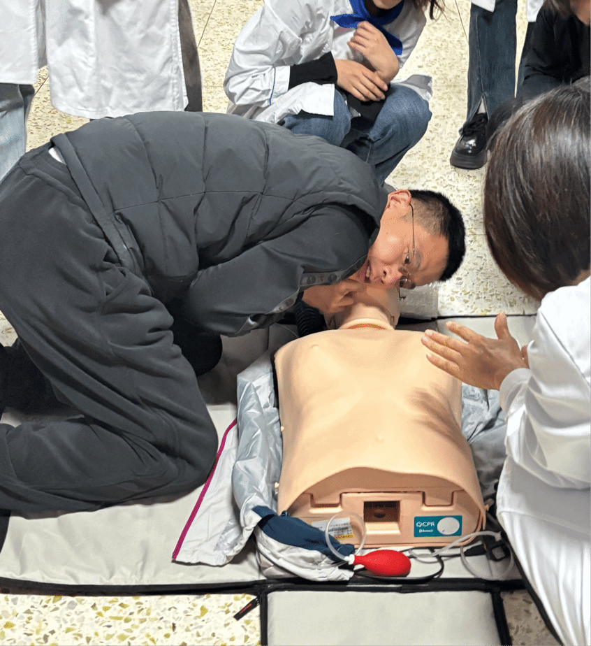 首先刘彦淑老师介绍了割伤/划伤、烧伤/烫伤、蛰伤、气管异物梗阻等意外损伤的应急处置方法。随后刘老师还详细讲授了心脏骤停的判断、心肺复苏的各个步骤以及海姆立克急救法,还强调了在急救过程中保持冷静、迅速判断环境安全的重要性。