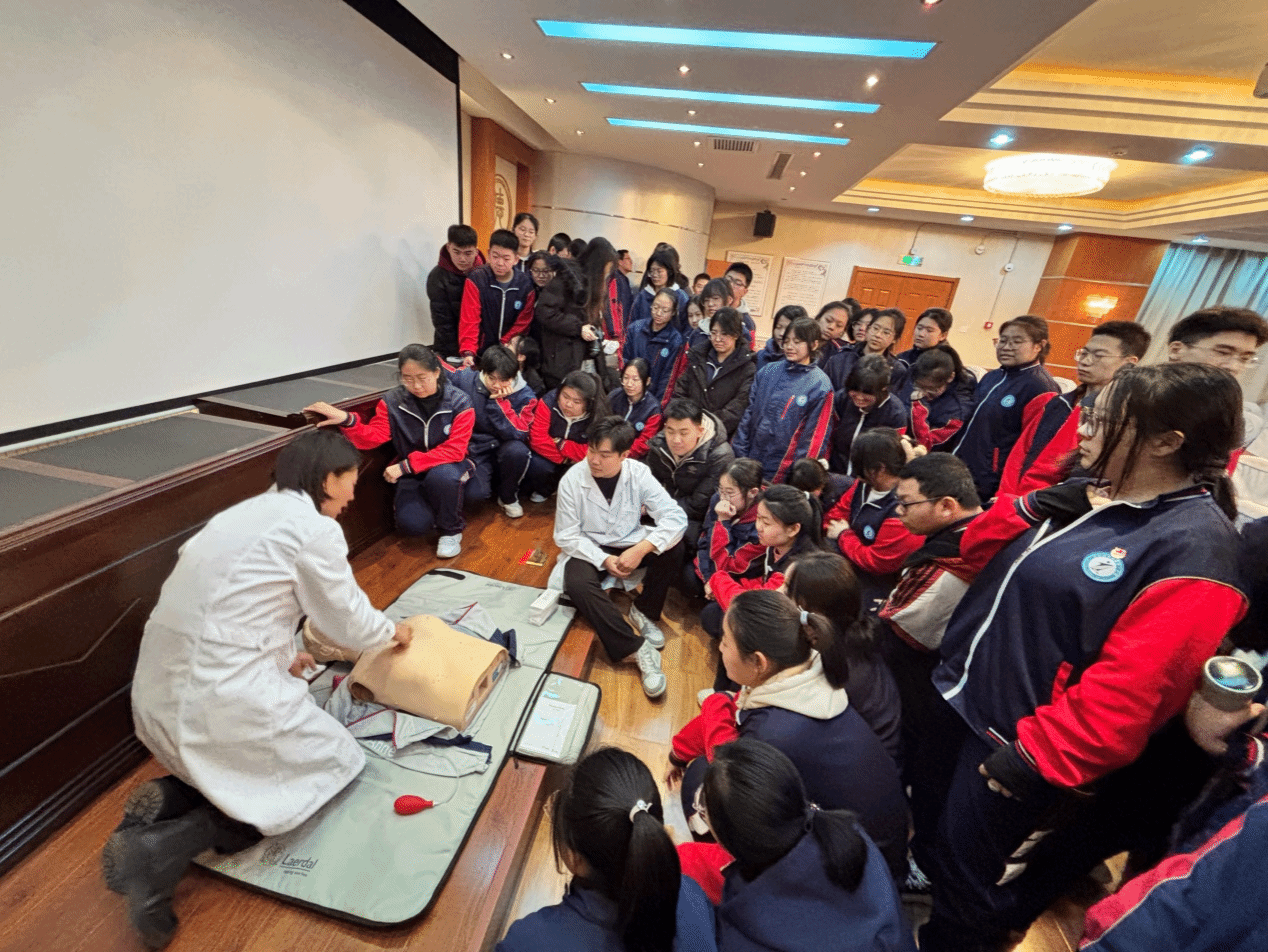 2024年12月9日下午,护理学院第五党支部携手“内蒙古自治区急救与慢病护理科普教育基地”深入呼和浩特市铁一中,开展了一场以“爱‘救’在身边”为主题的党日活动。呼市铁一中党总支书记贾绍罡、高中部执行校长张亚军等学校主要领导、第五党支部书记李宁及“内蒙古自治区急救与慢病护理科普教育基地负责人”刘彦淑副教授出席了此次活动,护理学院第五支部党员及铁一中高二学生参加了此次活动。