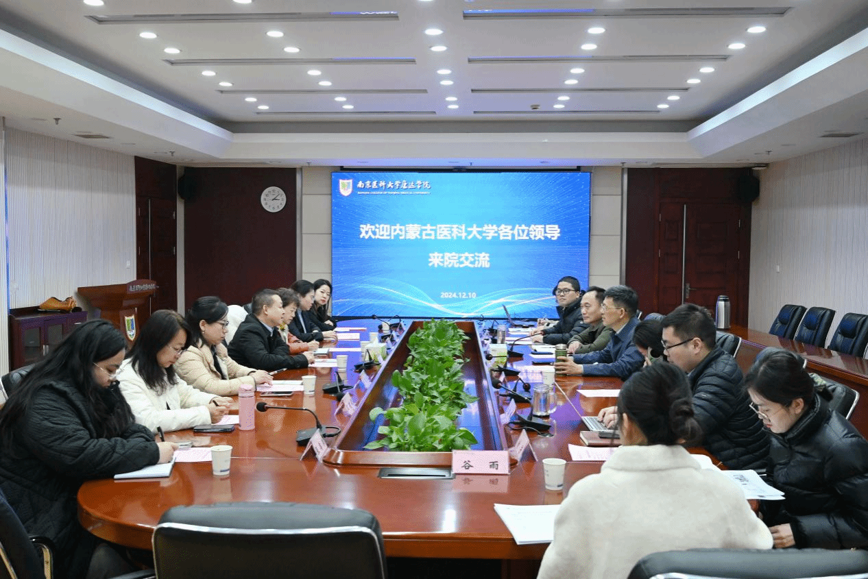 为了推进推进我院现代健康-养老护理产业学院建设,12月10日下午,内蒙古医科大学评建办公室(医学教育研究中心)主任康毅敏、护理学院党委书记徐松美、院长包丽丽等一行7人赴南京医科大学康达学院开展智慧养老产业学院调研及访企拓岗交流活动。