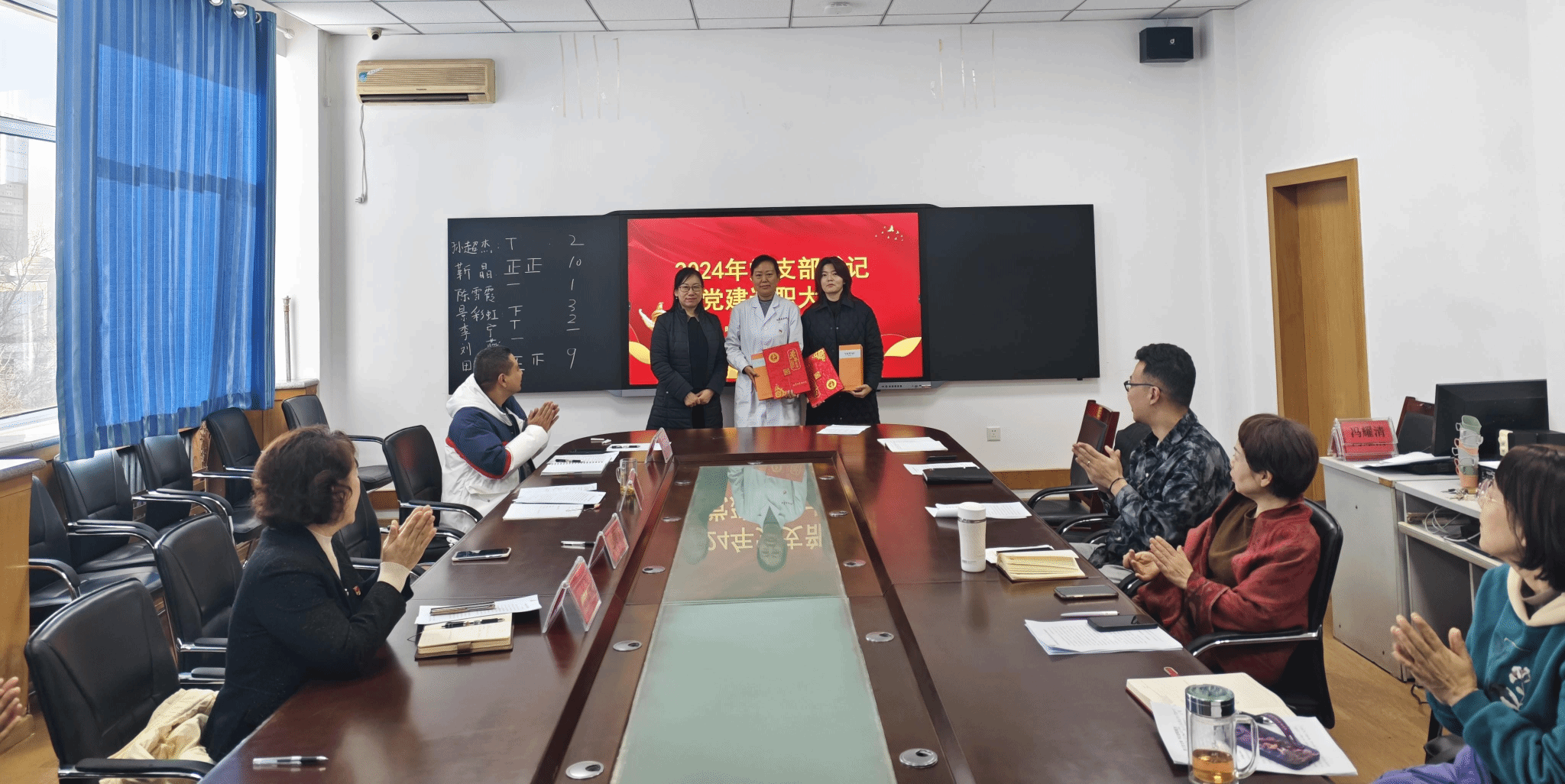 经无记名投票表决,第二党支部书记靳晶同志、第七党支部书记田晗同志被评为优秀党支部书记,由护理学院院长包丽丽为她们颁发荣誉证书和奖品。