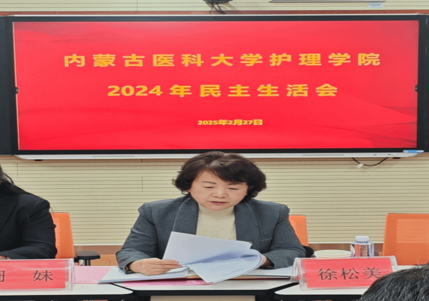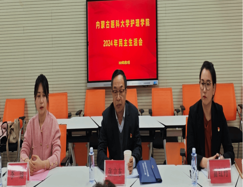 2月27日下午,护理学院党委2024年度民主生活会在内蒙古医科大学附属医院外科楼六楼示教室召开。学校第九督导组组长、党委委员、内蒙古医科大学附属医院党委书记张立东,内蒙古医科大学附属医院党委办公室主任富红丹,第九督导组联络员李臻莅临指导。学院党委领导班子成员、党支部书记代表、职能科室负责人代表列席会议。会议由党委书记徐松美主持。