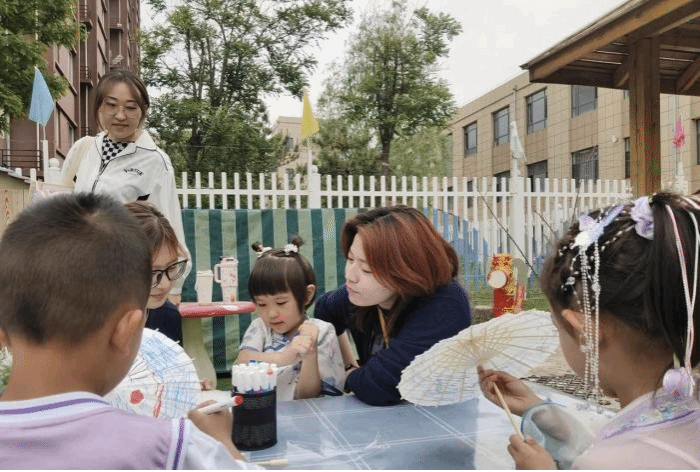 纸鸢与油纸伞,是传统手工艺的经典代表。“伞引纸鸢舞东风”活动现场,家长和孩子分工协作。裁剪、粘贴、绘制,在丙烯马克笔的描绘下,纸鸢与油纸伞逐渐变得绚丽多彩。制作完成后,仿佛能看到纸鸢乘风高飞,油纸伞漫步烟雨,亲子共同感受传统手工艺的精巧与浪漫。