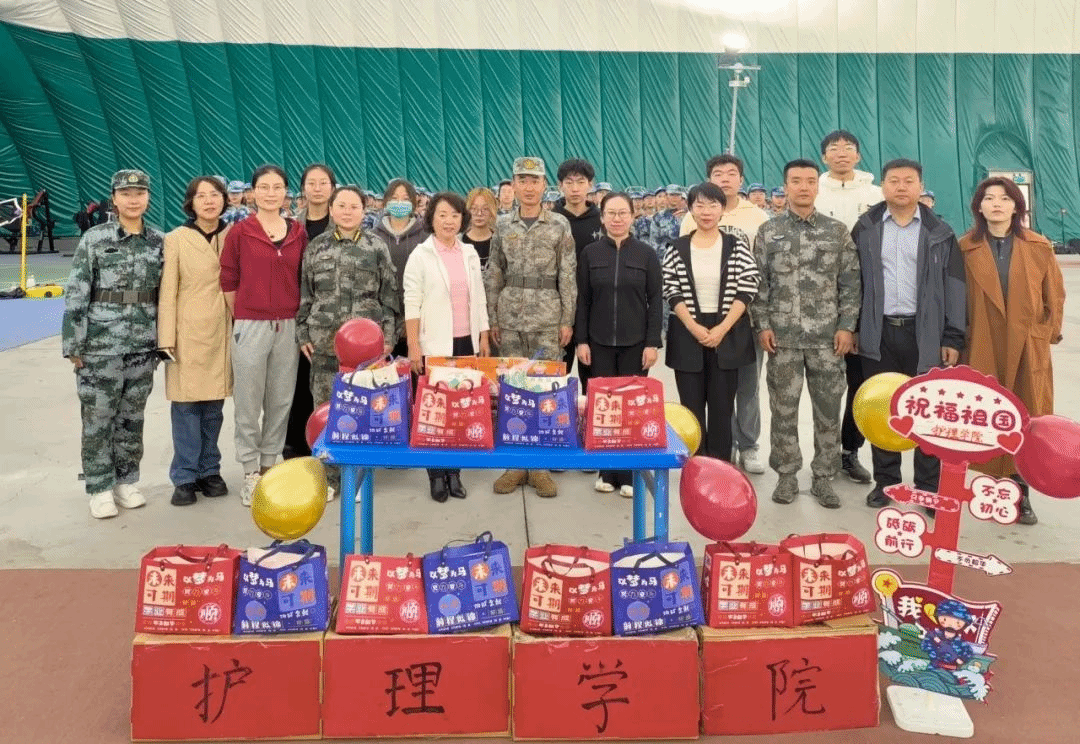 中秋佳节来临之际,护理学院全体领导班子以及全体辅导员前往军训现场,慰问正在紧张训练中的教官、2024级新生及代班们,并向大家致以节日的问候和中秋祝福。