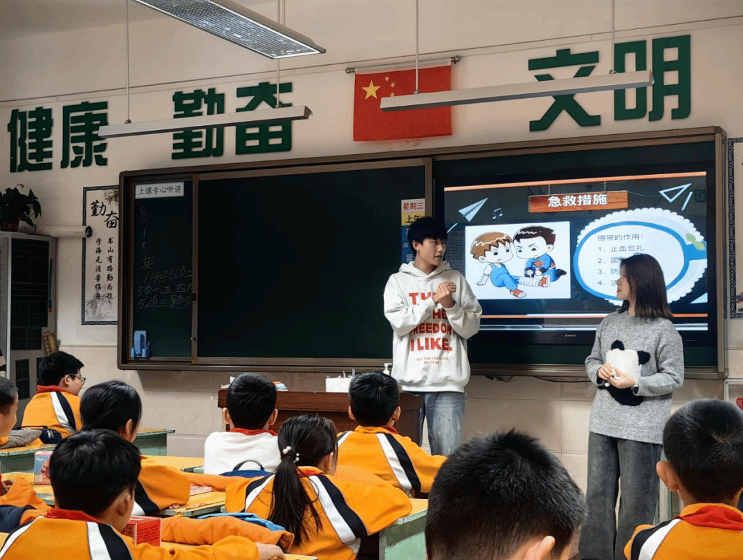为提升大学生的教育与实践能力,增强大学生社会责任感,树立榜样与引导作用,传递安全知识与技能,促进校园安全文化建设。12月4日护理学院第六党支部与第七党支部共赴呼和浩特市赛罕区东风路小学开展“五育铸魂,护学励行”、“护幼相伴,医路研行”党建品牌活动,本活动旨在增强中小学生安全意识、学习安全知识、培养安全习惯、提升学生应急处理能力、提高自我保护意识,保障学生生命安全和身心健康。