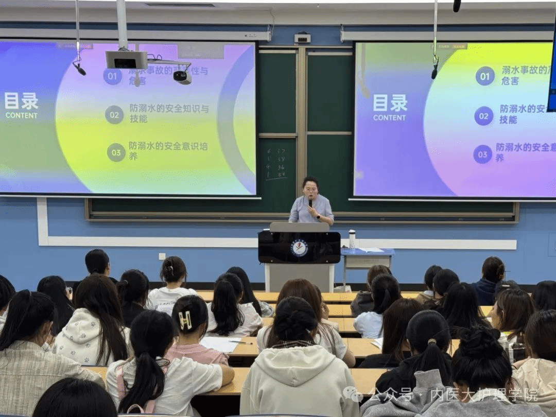 为贯彻内蒙古医科大学关于校园安全工作的要求,提高我院大学生安全意识,普及急救知识,确保学生生命安全、人身安全及财产安全,2025年4月29日,我院于金山校区知行楼401进行大学生安全教育主题教育,由护理学院党委副书记兼副院长周妹进行讲授,并通过学习通开启直播课程,24级同学线下参加,其余同学线上参加,确保此次教育课做到全院学生全覆盖。