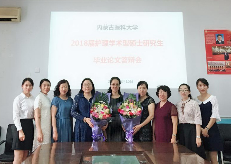 6月15日下午,我院2018届学术型硕士研究生毕业论文答辩工作在新华校区进行。本次答辩聘请了内蒙古医科大学附属医院护理部副主任焦改梅老师为答辩委员会主席,闫清秀主任等4位护理专家为答辩委员会成员。各位评委专家在认真听取研究生汇报的基础上,针对研究生所开展的课题研究工作以及论文内容进行提问指导,研究生就专家所提问题依次进行作答。整个答辩过程规范、严谨,充分显示了答辩会的学术性和公正性。经答辩委员会一致投票表决,本次参加答辩的3位研究生均顺利通过答辩。